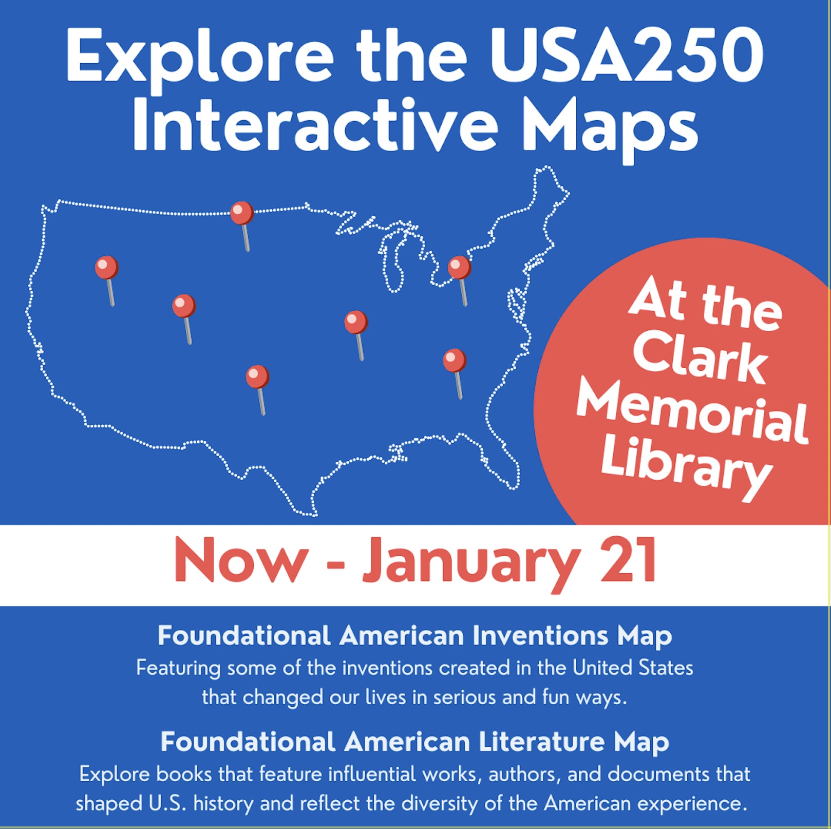 You can use the computers, browse the shelves, use regular library services, view the current Art in the Clark Exhibit and shop in the Friends’ Book Shop. Regular hours remain the same: Tuesday–Thursday 1 pm–5:30 pm and Friday & Saturday 10 am–2:30 pm.